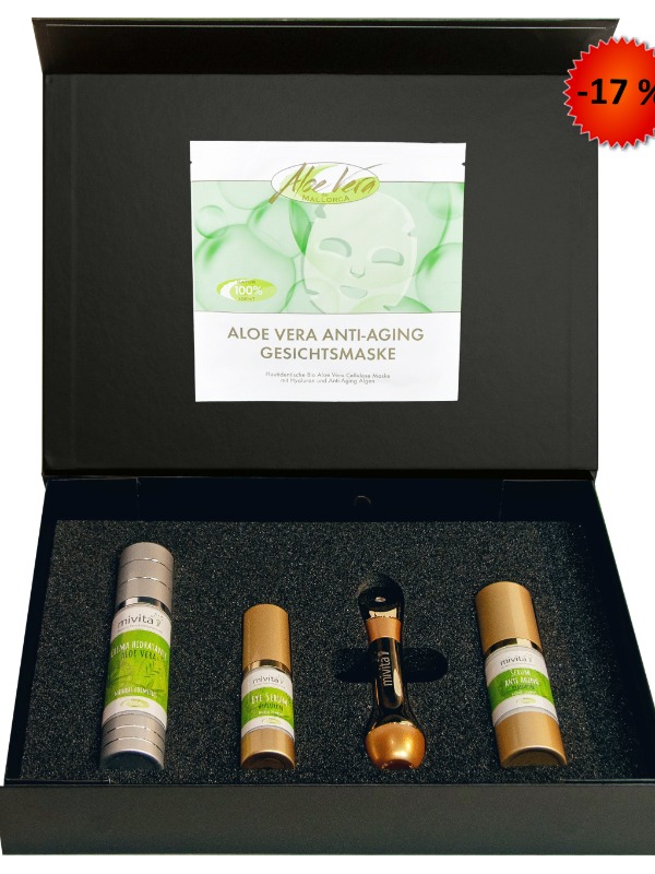 Gold Anti Aging Maske: Aloe Vera Anti-Aging Maske mit Oligo Hyaluron und Juvenessence Algen Extrakt für das beste Anti-Aging Ergebnis! Durch die Fermentation der Inhaltsstoffe, durch ein neuartiges Verfahren, erreichen wir in unserer Maske eine hautidentische laminare Struktur. So ist es dieser Anti Aging Maske möglich die enthaltenen Wirkstoffe deutlich schneller, tiefer und effektiver in die tieferen Hautschichten zu transportieren. Dadurch gelingt es sie schneller genau an die Stellen zu transportieren an denen sie ihre Wirkung schnellst- und bestmöglich entfalten können. Während der Fermentation lassen spezielle Mikroorganismen innerhalb von wenigen Tagen eine Art Bio-Zellulose entstehen, welches der köpereigenen Kollagenmatrix entspricht. Pflanzliche Membranlipide und Hyaluron bilden zusätzlich eine lamellare Struktur zwischen den Fasern, welche der hauteigenen Schutzbarriere entspricht. Hierdurch können überdurchschnittlich gute Anti Aging Effekte und Behandlungsergebnisse erzielt werden. Die natürliche Hautschutzbarriere wird dabei gestärkt und die Haut wirkt straffer und jugendlicher. Kein anderes kosmetisches Präparat kann soviel Feuchtigkeit und Wirkstoffe in die Haut transportieren wie unsere Aloe Vera Anti-Aging Maske. Feuchtigkeitsfaktoren und Hyaluronmoleküle gelangen durch die Bio-Membranmaske in tiefe Hautschichten und können dort ihre optimale Wirkung entfalten.